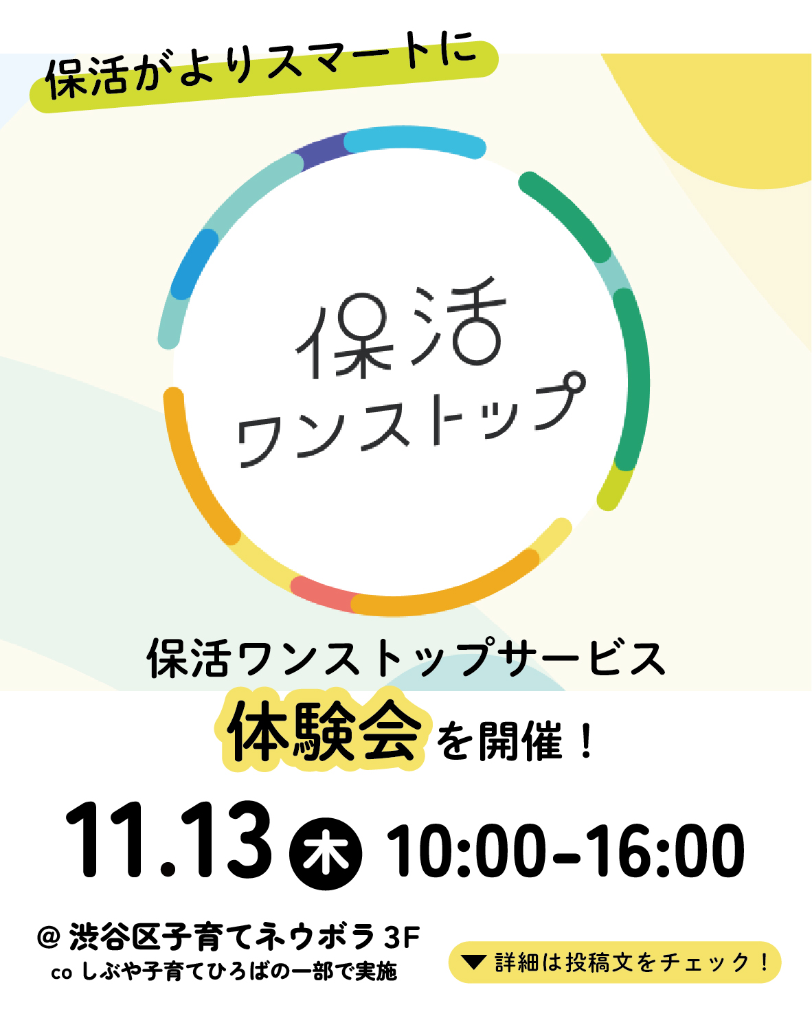今回はcoしぶやで保活ワンストップサービスの体験会を実施します!