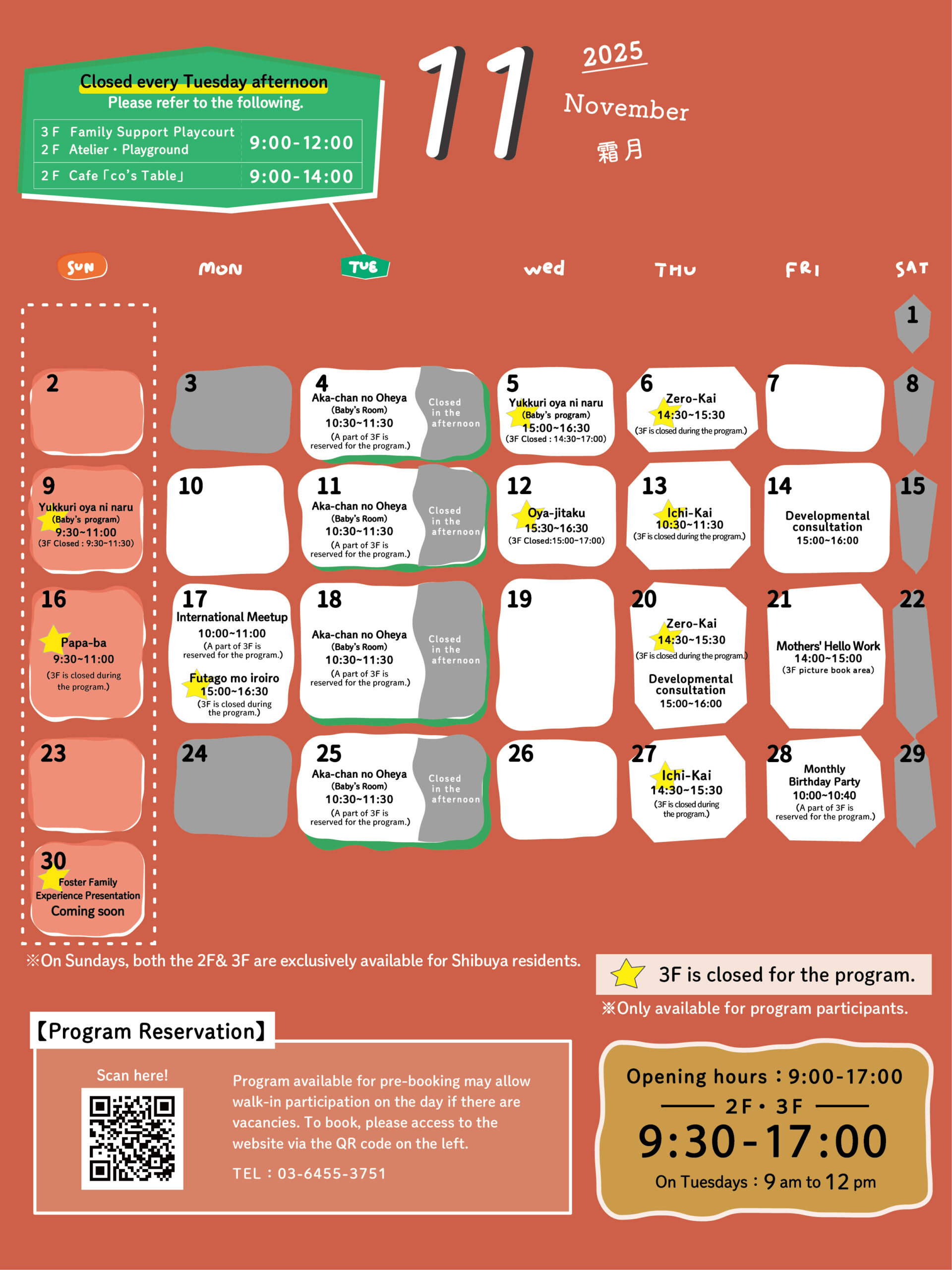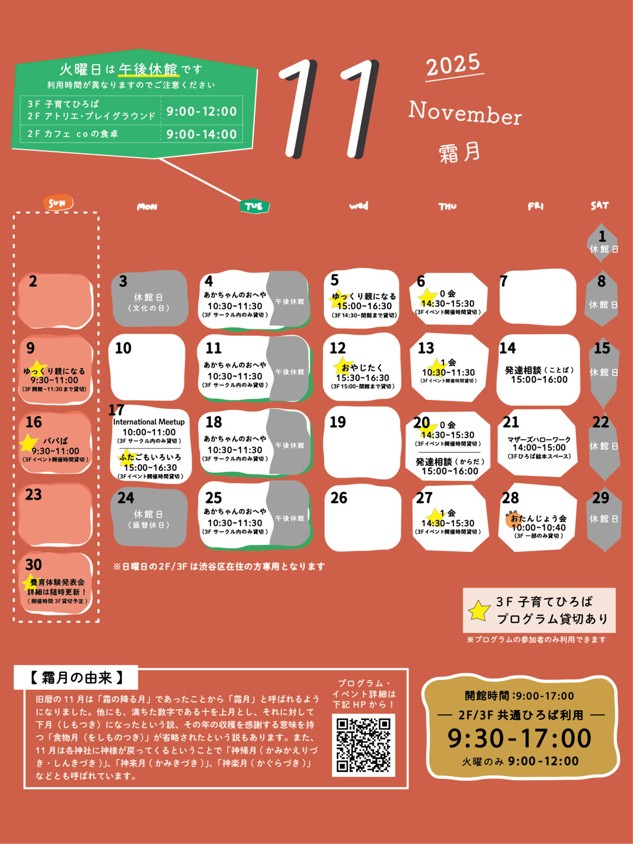 coしぶや11月のカレンダーをお届けします。(英語版もあります!)