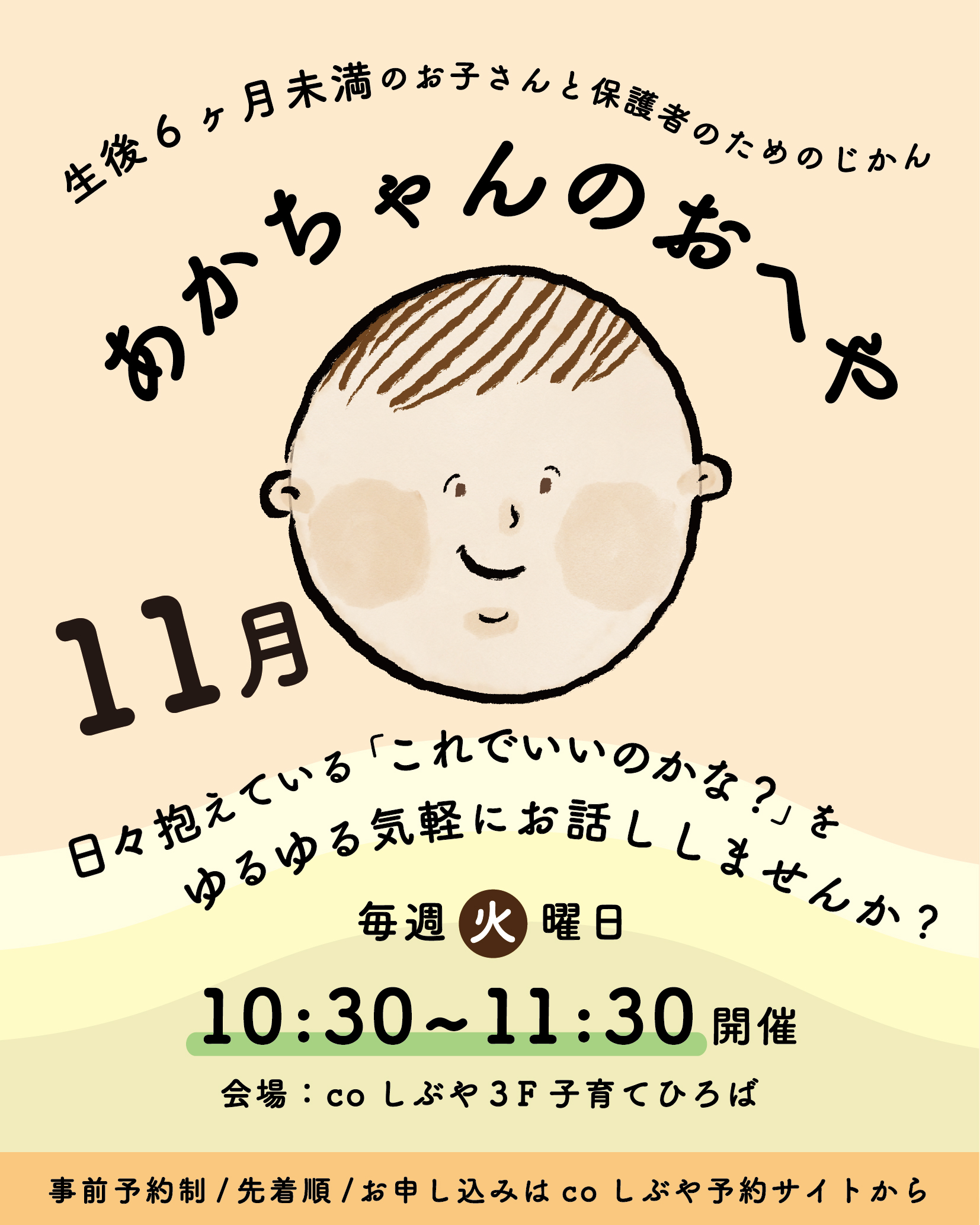 メールの場合は件名に「11月〇日あかちゃんのおへやの件」とご記載ください。