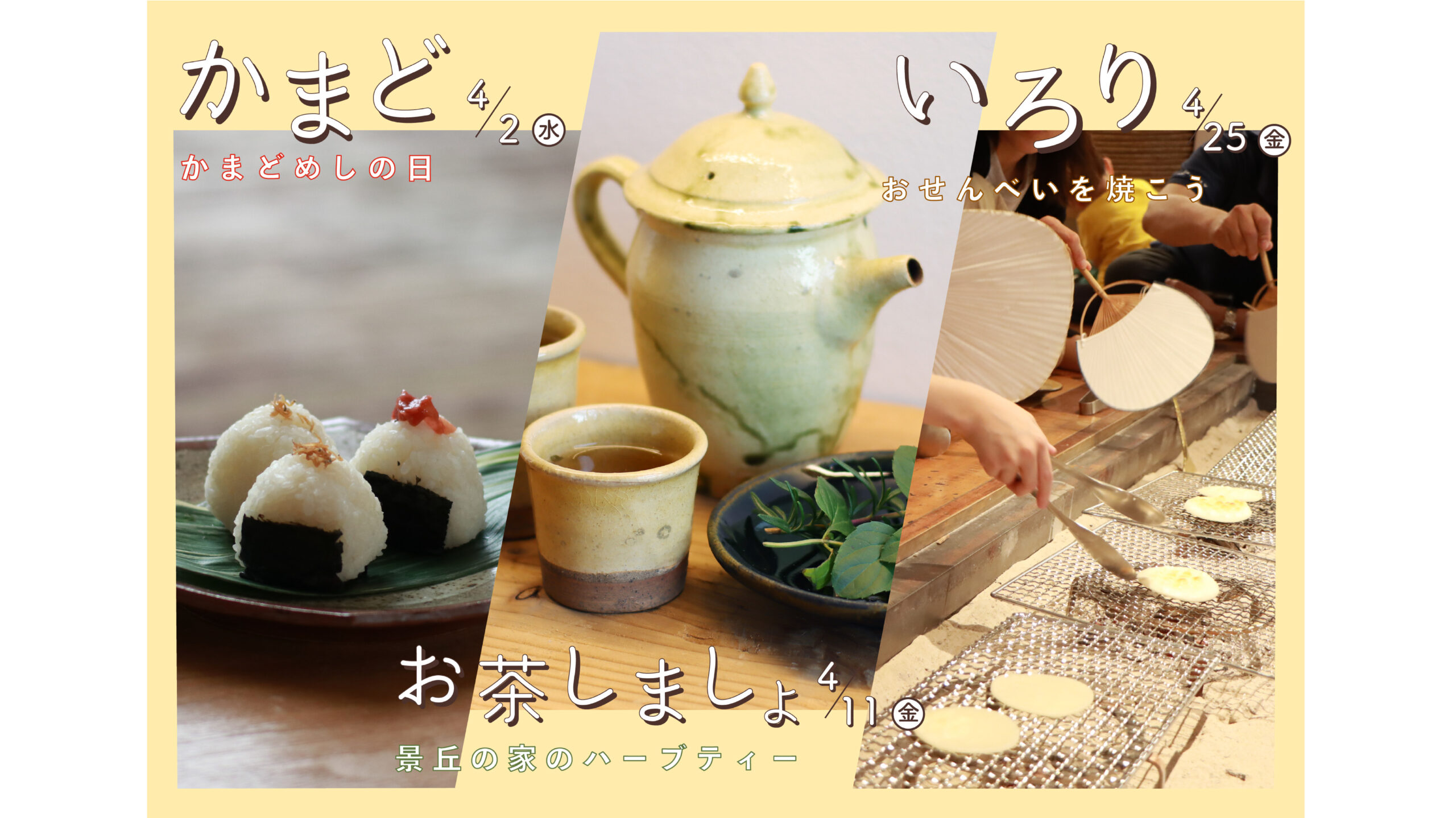 4月からは、『いろりの日』、『かまどめしの日』に加えて、『お茶しましょ』のプログラムが仲間いり。