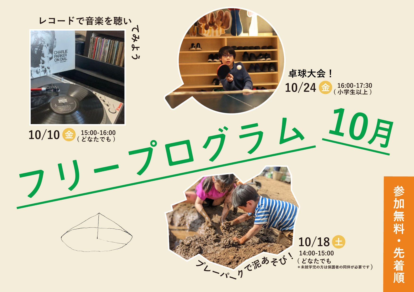 10月は、毎月人気の「卓球大会」に、どろこん山プレーパークでみんなで「泥あそび」!