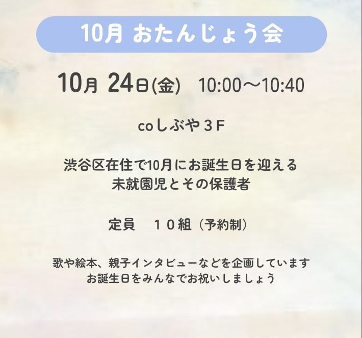 対象:渋谷区在住で10月(開催月)にお誕生日を迎える未就園児とその保護者