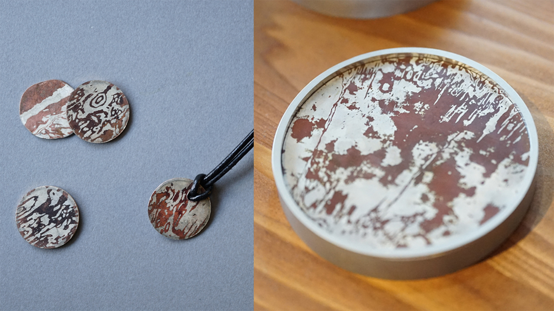 杢目金(もくめがね)は、金属の層を重ねて模様を作り出す、日本独自の伝統的な金工技法です。