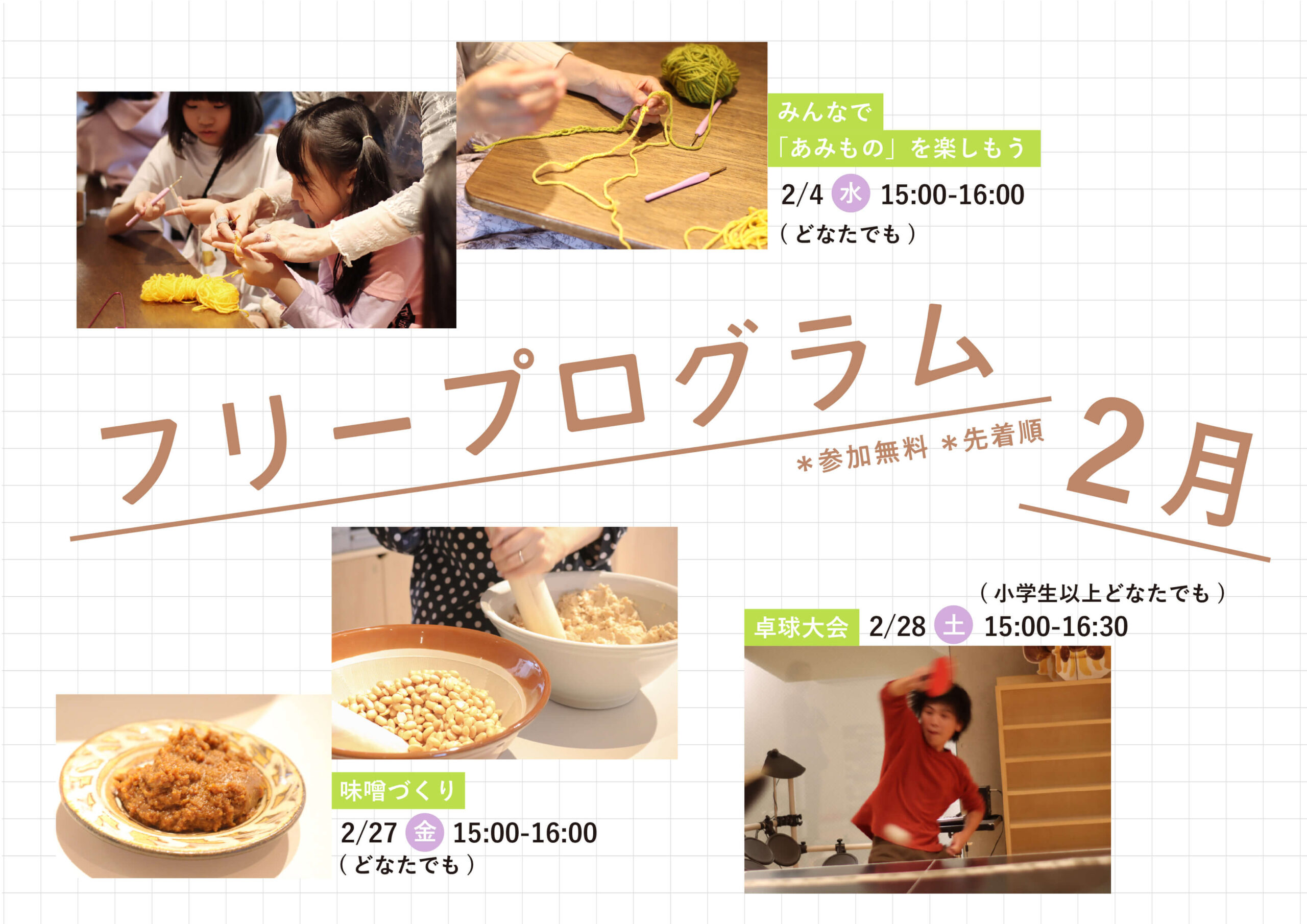 2月は、卓球大会にあみものやお味噌づくりなど、人気のプログラムを開催。