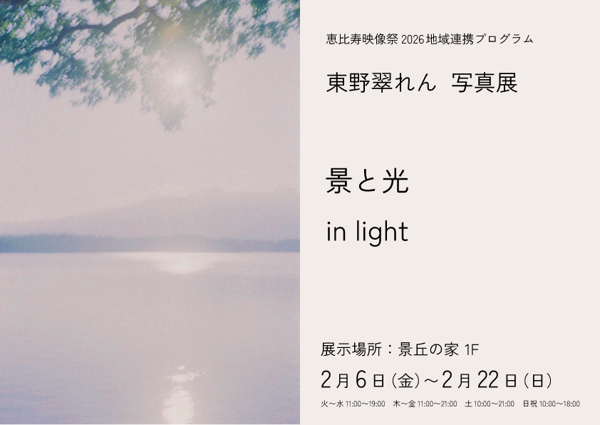 景丘の家で、恵比寿映像祭2026の地域連携プログラムとして写真家の東野翠れんさんの写真展を開催いたします。