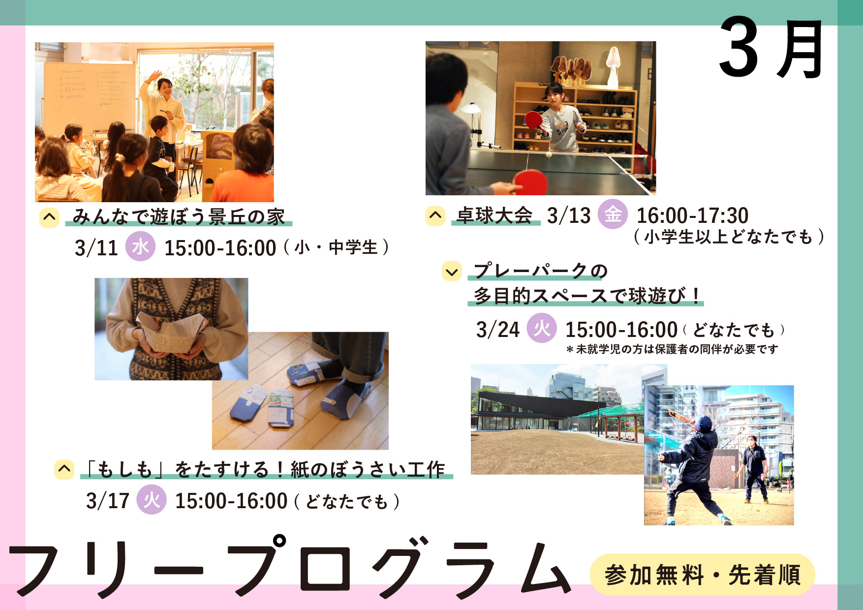 3月は、地震や停電など「もしも」のときに役立ち、防災が身近になる「紙のぼうさい工作」や、