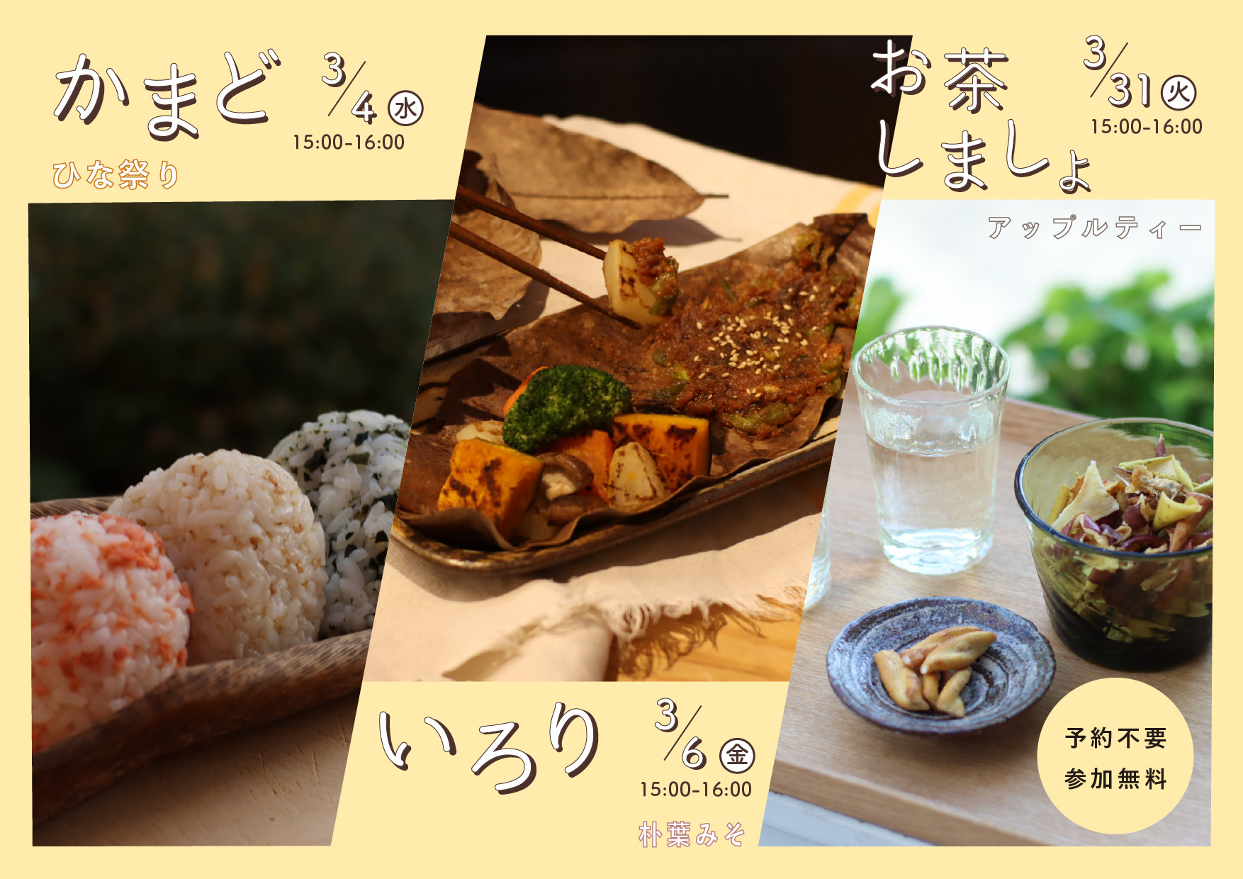 「かまどめしの日」は、 ひな祭りの三食おにぎりを