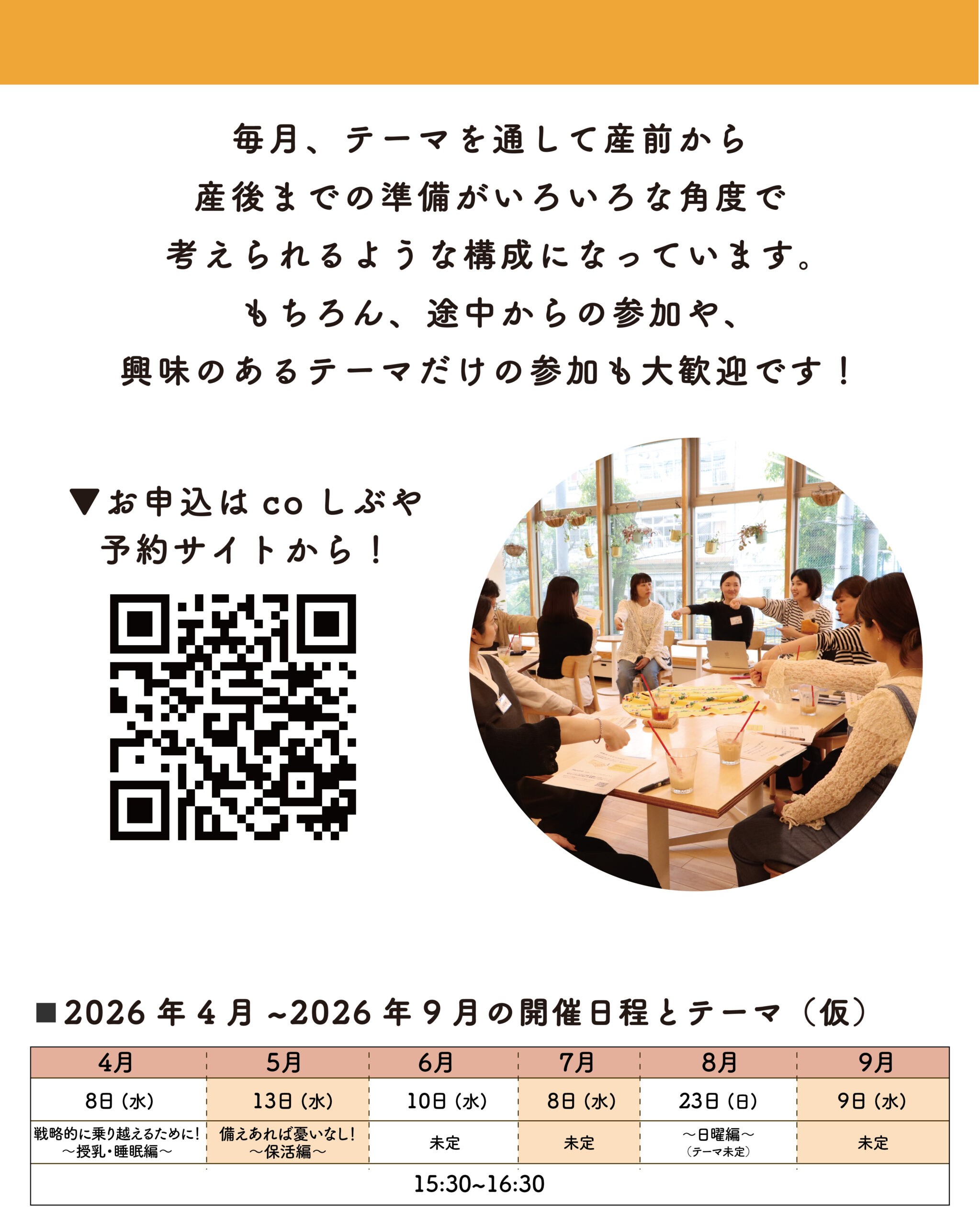そんなcoしぶやのことを、妊娠中からより知っていただくために、月に1回プレパパ・プレママ向けのイベントを行っています。