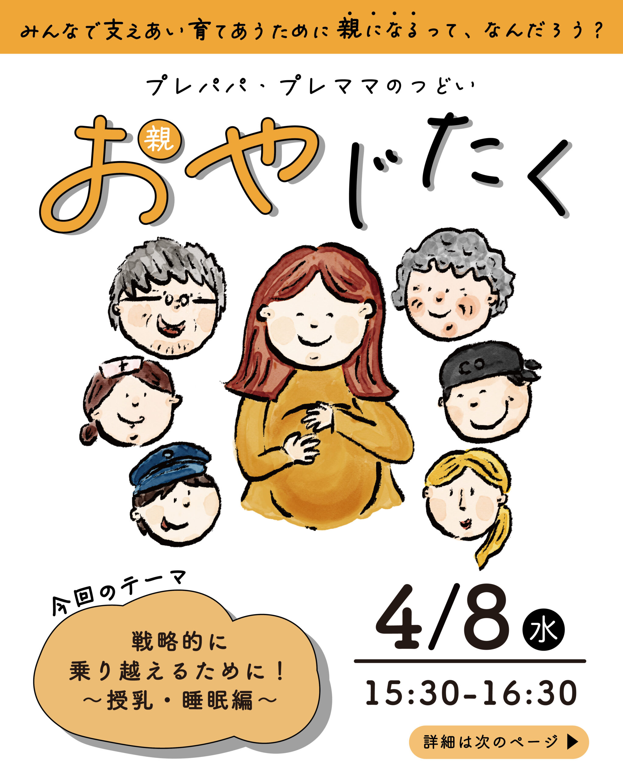 4月のテーマは「赤ちゃんのいる生活ってどんな感じ?〜授乳・睡眠編〜」 です。