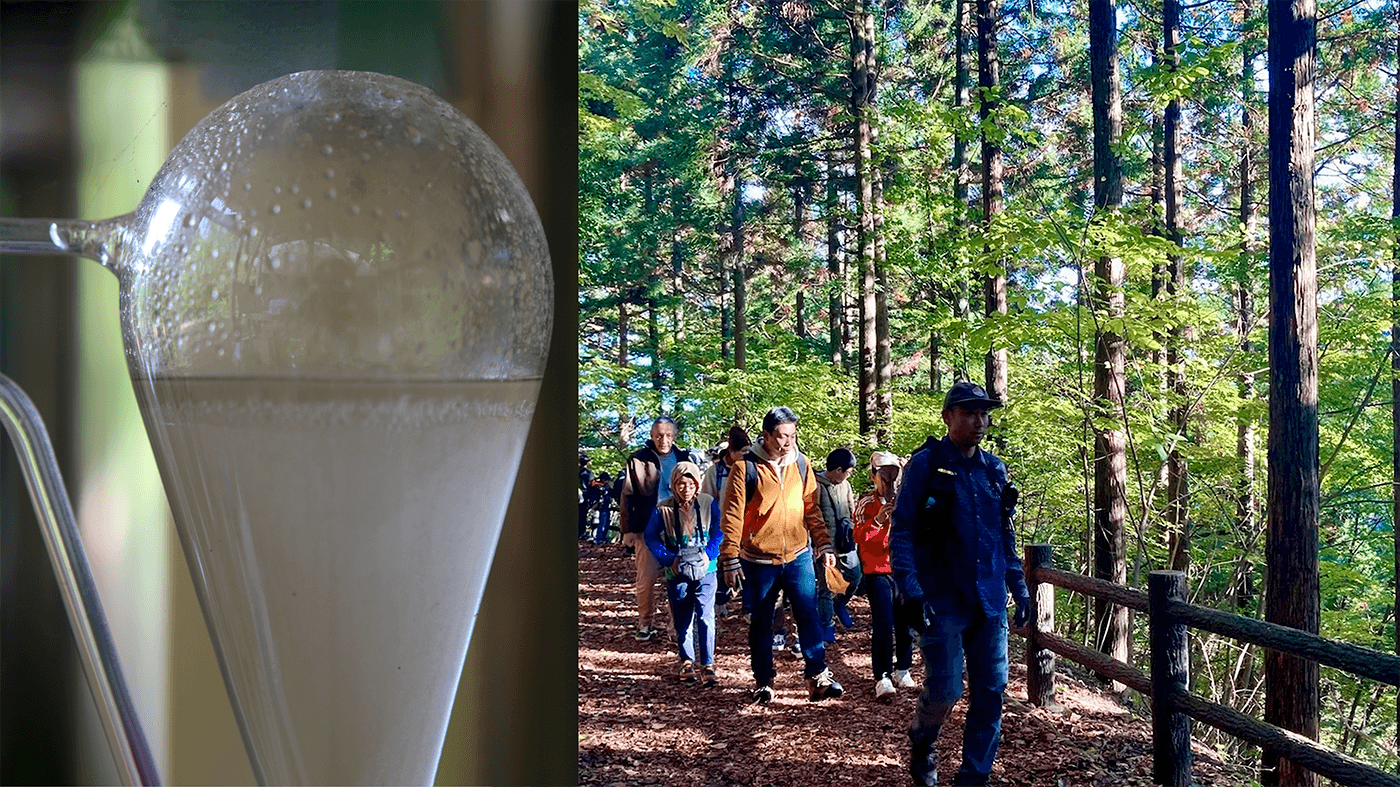 東京都最西端の檜原村。森林率93%を誇る新緑豊かな山を、親子で歩きながら森の中へ。