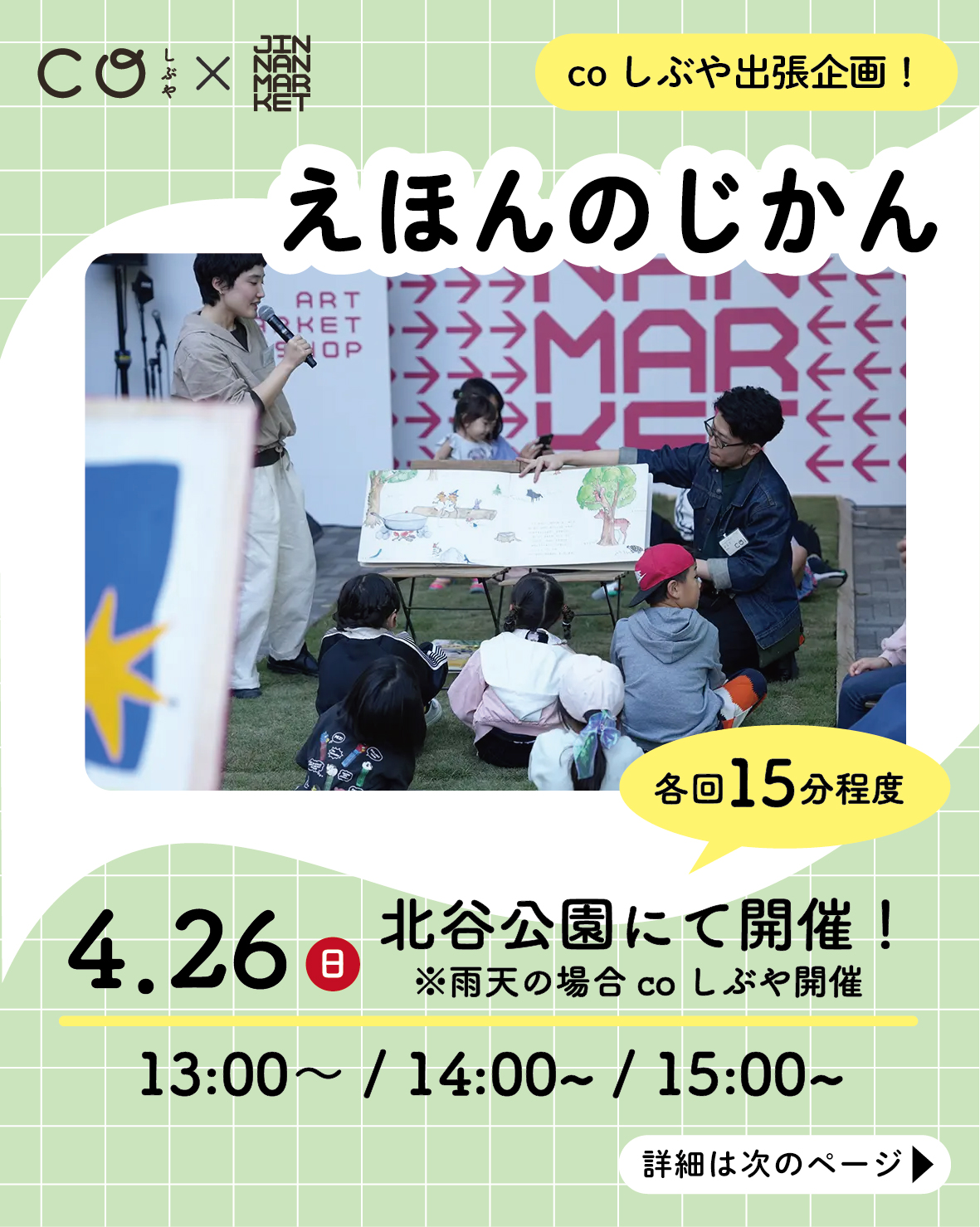 ※雨天時は北谷公園ではなく、coしぶやにて実施します。その際は改めてInstagramストーリーズにてアナウンスいたします。