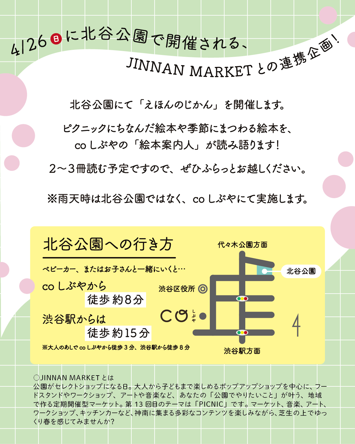 ※雨天時は北谷公園ではなく、coしぶやにて実施します。