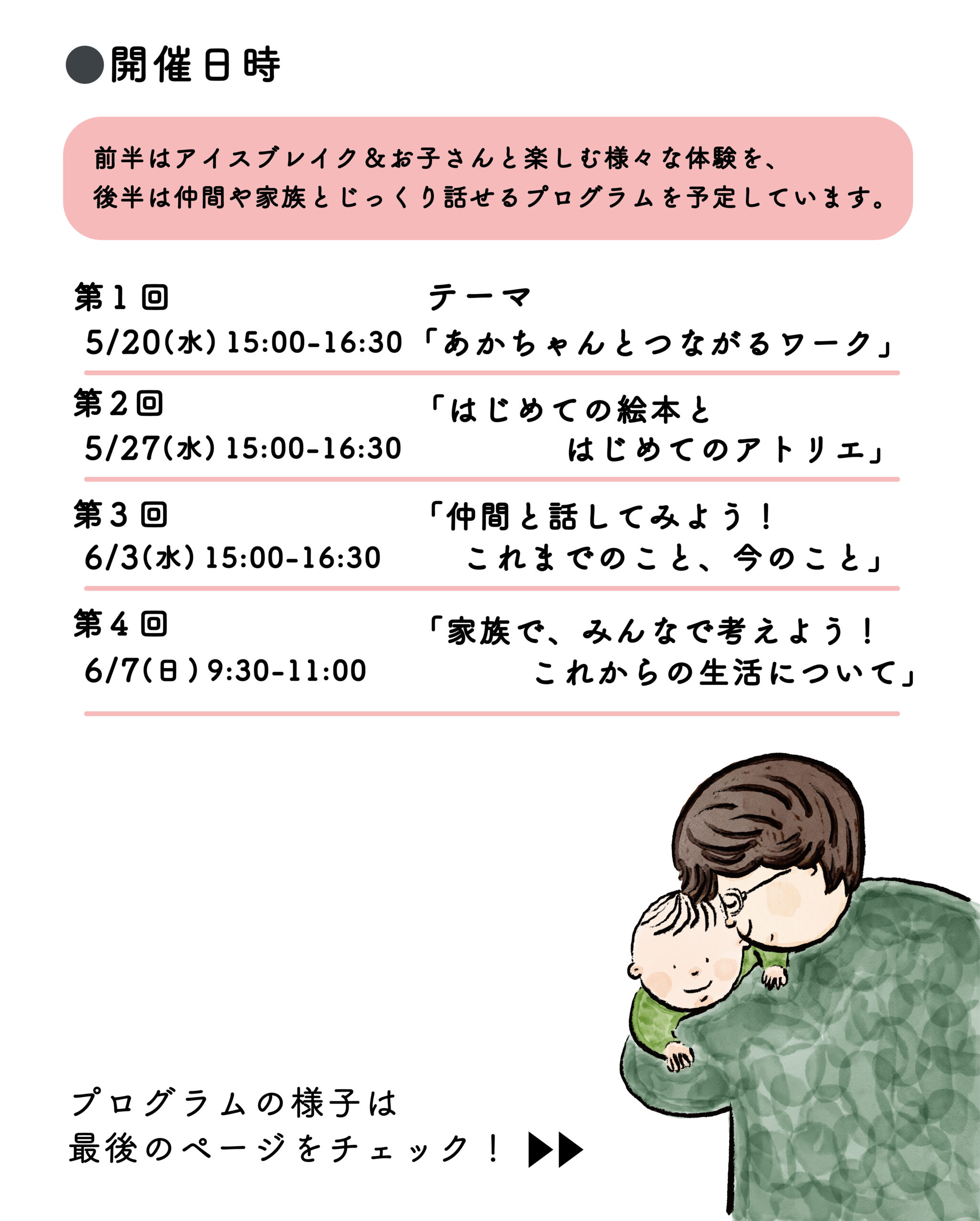あかちゃんと、そして自分自身と向き合う全4回のプログラムです。