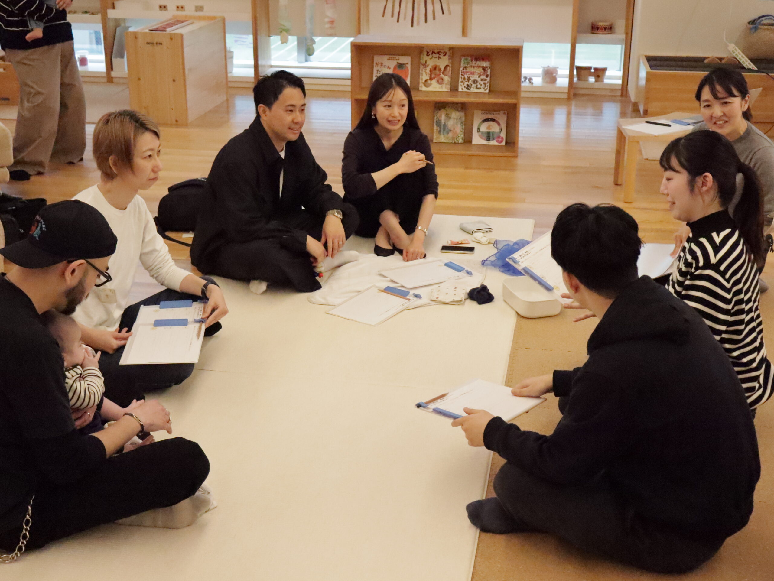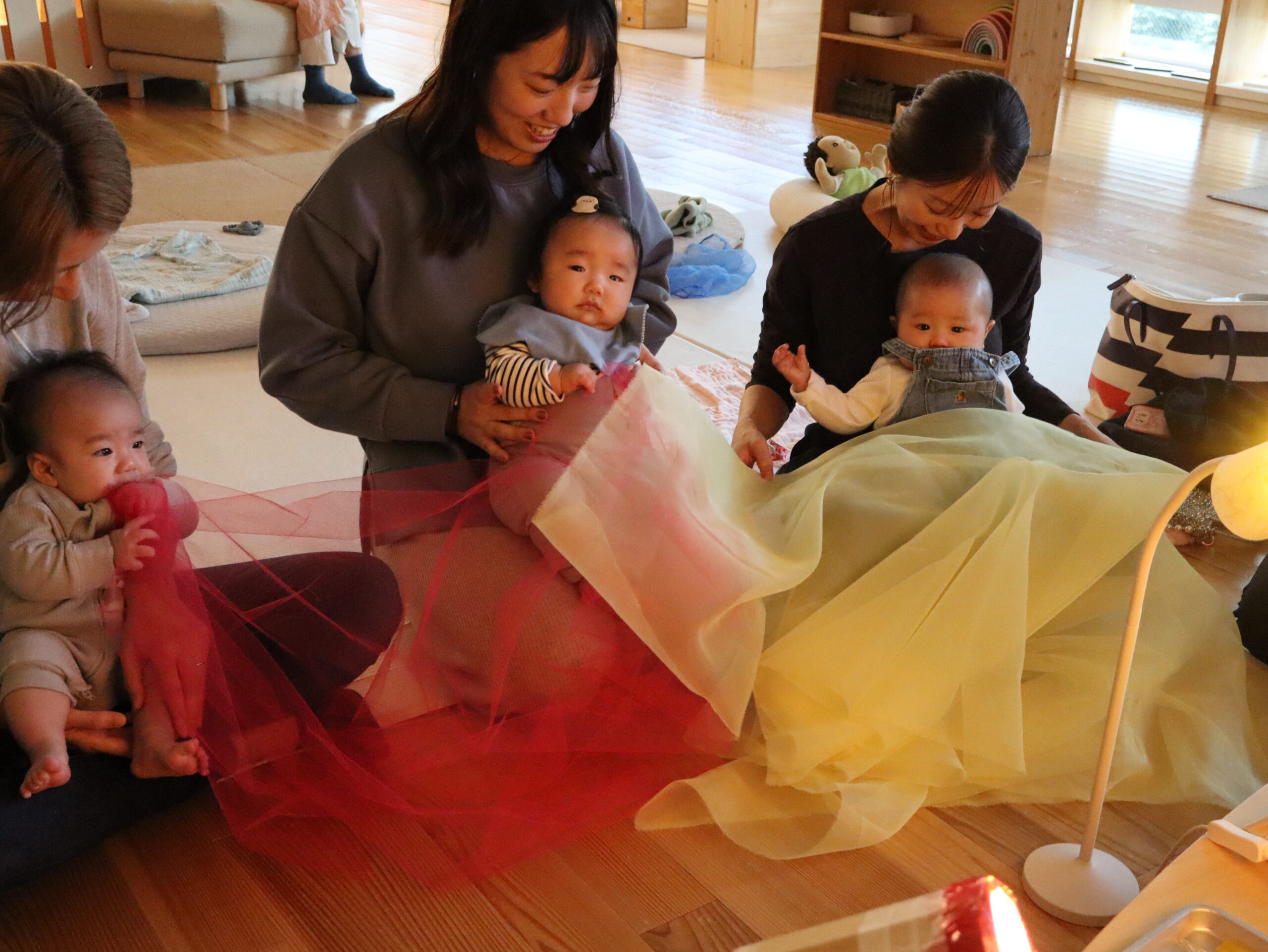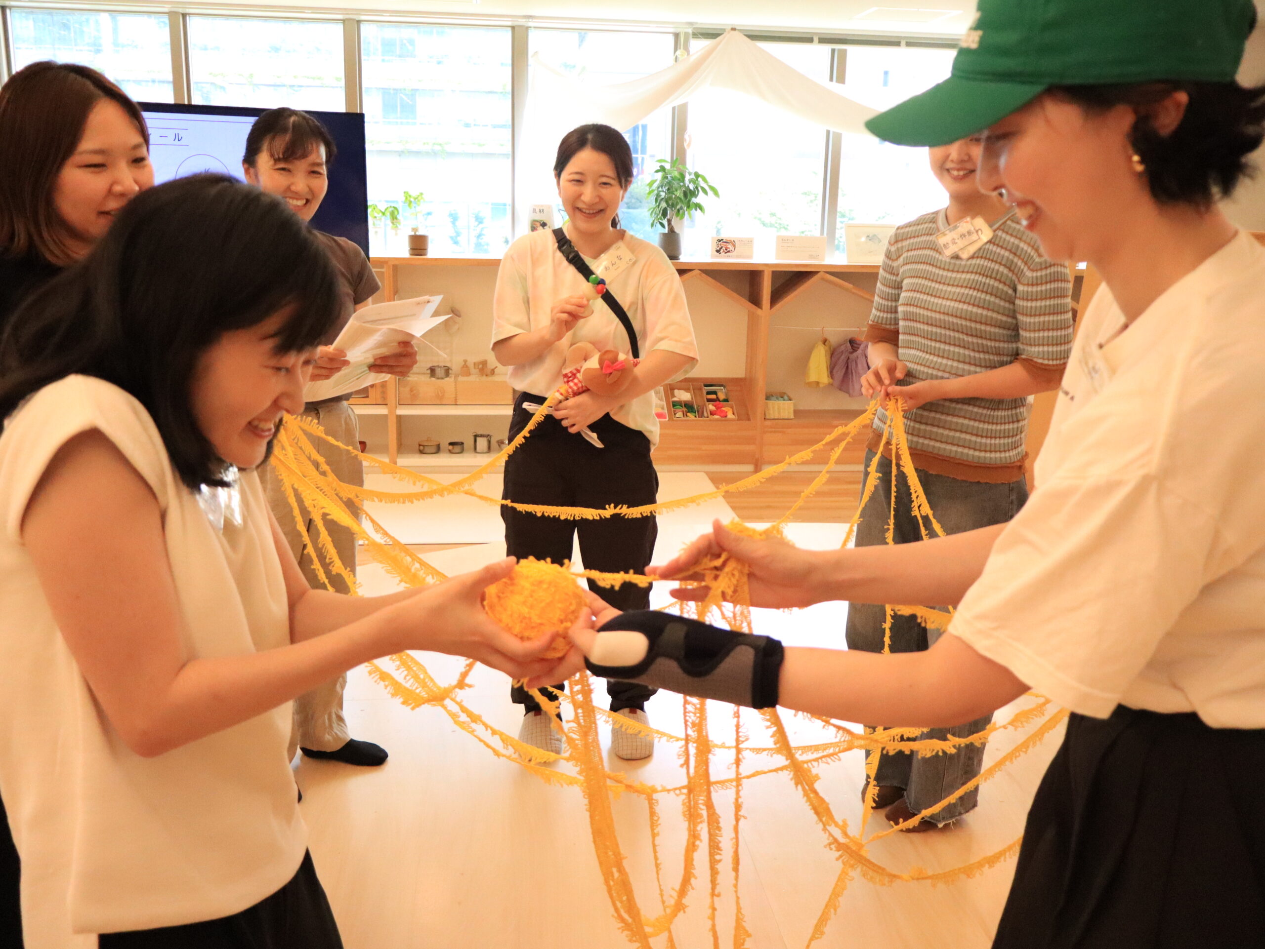 毛糸を使ったワークを通して、あかちゃんの中で育っている見えない“つながり”を感じる時間。