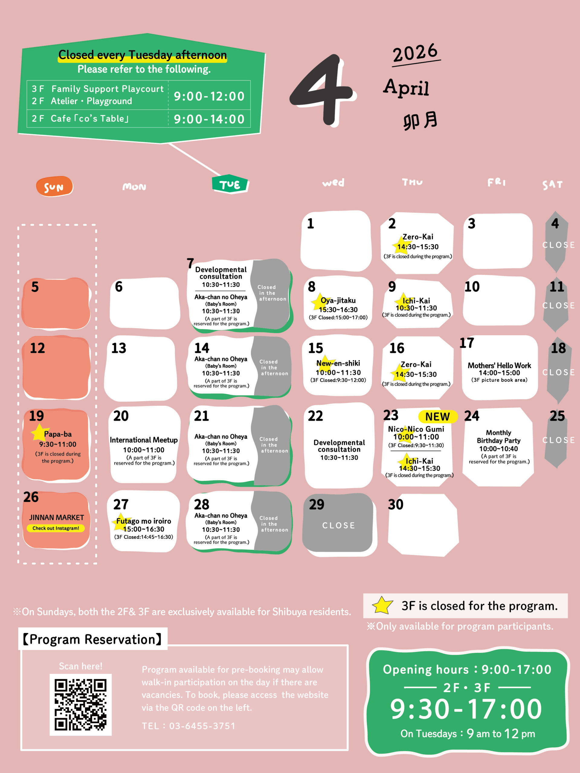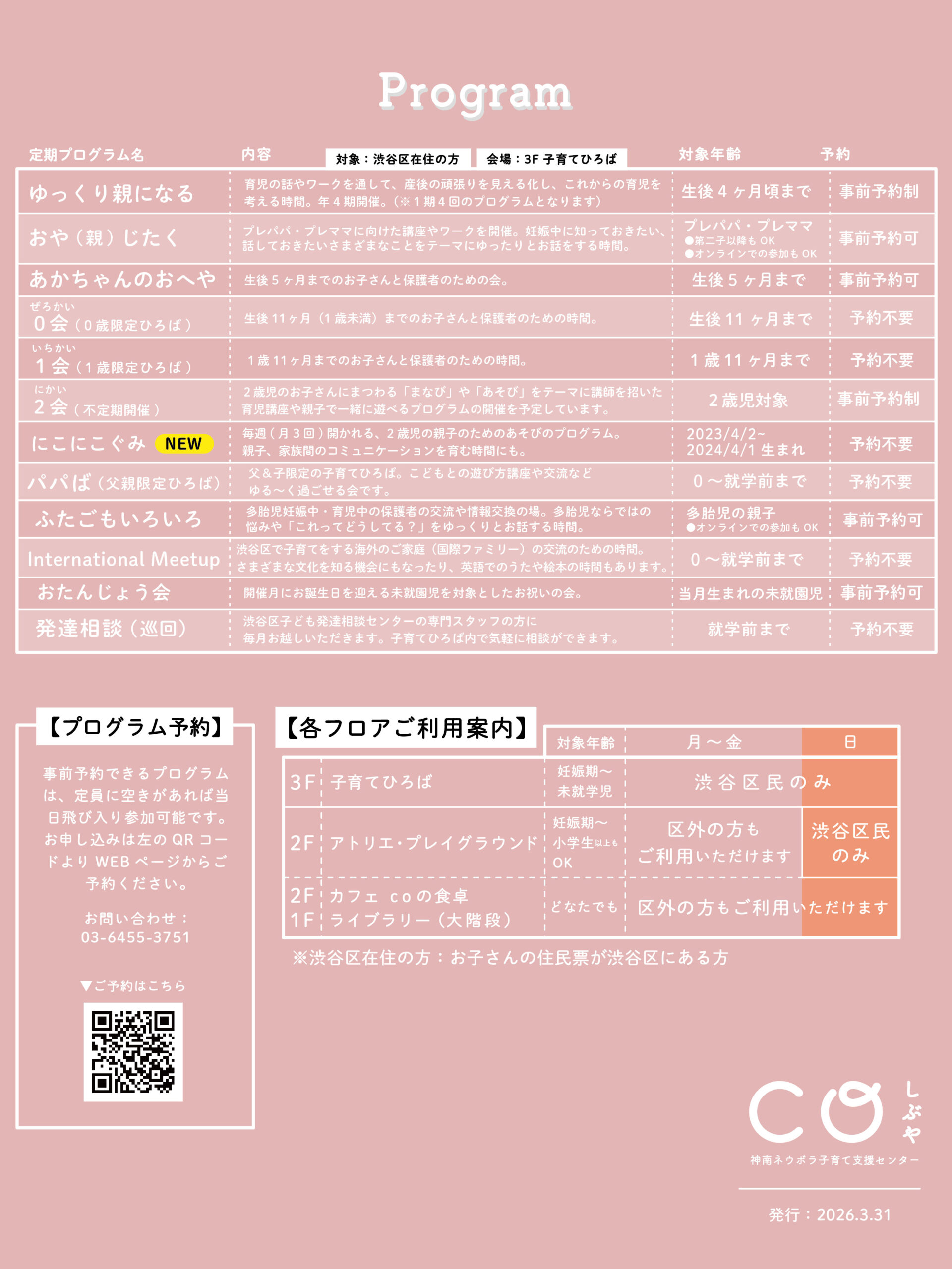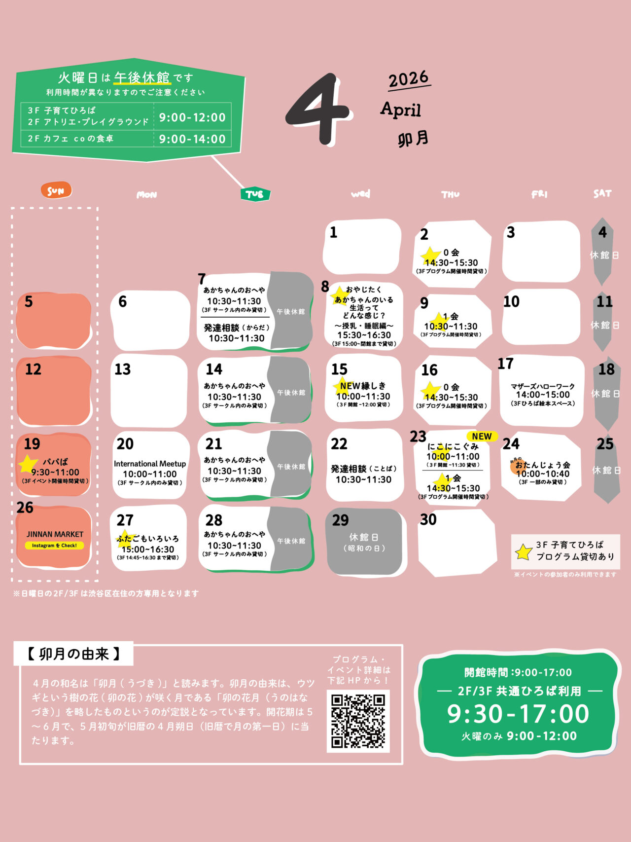 coしぶや 4月のカレンダーをお届けします。